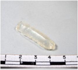 | Description / विवरण | A fragment of a rectangular shaped chalcedony blade showing dorsal sides with sharp edges having smooth surface and triangular section. |