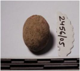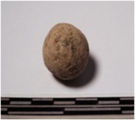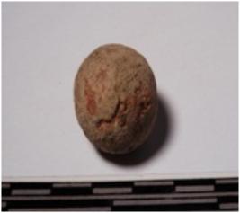 | Description / विवरण | A terracotta round shaped sling ball, circular in section of smooth surface. |
