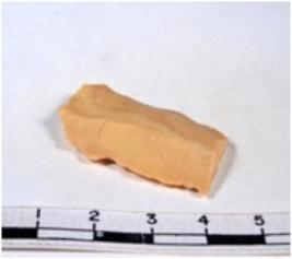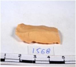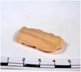 | Description / विवरण | A fragment of a rectangular shaped chert blade showing dorsal sides with sharp cutting edges having smooth surface and triangular section. |