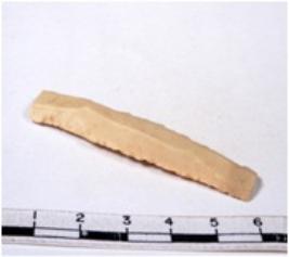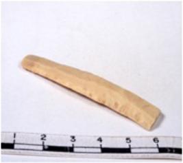| Description / विवरण | A fragment of a rectangular shaped chert blade showing dorsal sides with sharp edges having smooth surface and triangular section. |