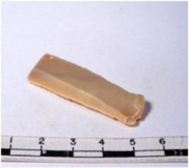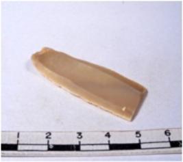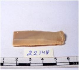 | Description / विवरण | A fragment of a rectangular shaped chert blade showing dorsal sides with sharp edges having smooth surface and triangular section. |