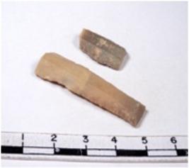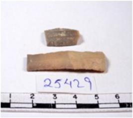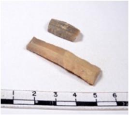 | Description / विवरण | A fragment of a rectangular shaped chert blade showing dorsal sides with sharp cutting edges having smooth surface and triangular section. |