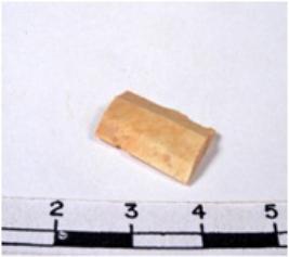 | Description / विवरण | A fragment of a rectangular shaped chert blade showing dorsal sides with sharp cutting edges having smooth surface and triangular section. |