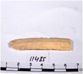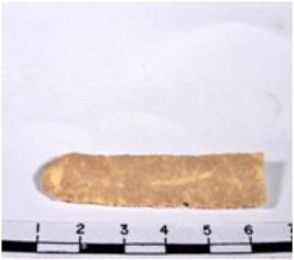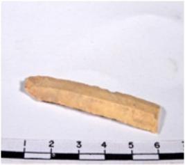 | Description / विवरण | A fragment of a rectangular shaped chert blade showing dorsal sides with sharp cutting edges having smooth surface and triangular section. |