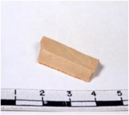 | Description / विवरण | A fragment of a rectangular shaped chert blade showing dorsal sides with sharp edges having smooth surface and triangular section. |