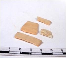 | Description / विवरण | A fragment of a rectangular shaped chert blade showing dorsal sides with sharp cutting edges having smooth surface and triangular section. |