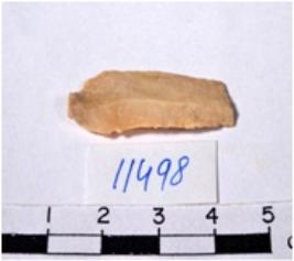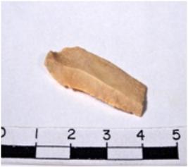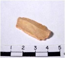 | Description / विवरण | A fragment of a rectangular shaped chert blade showing flat sides with sharp cutting edges having smooth surface and uneven section. |