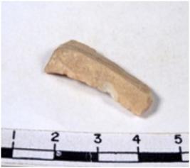 | Description / विवरण | A fragment of a rectangular shaped chert blade showing dorsal sides with sharp cutting edges having smooth surface and triangular section. |