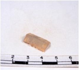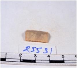 | Description / विवरण | A fragment of a rectangular shaped chert blade showing dorsal sides with sharp edges having smooth surface and triangular section. |