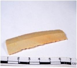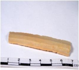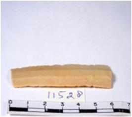 | Description / विवरण | A fragment of a rectangular shaped chert blade showing dorsal sides with sharp cutting edges having smooth surface and triangular section. |