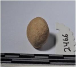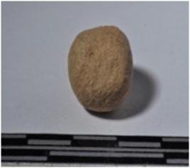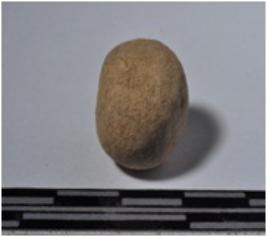 | Description / विवरण | A small terracotta round shaped sling ball of smooth surface. |