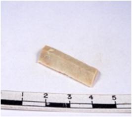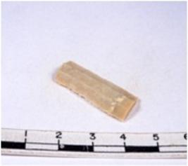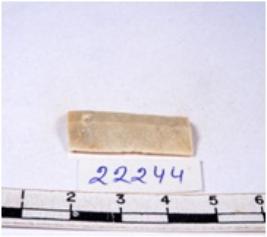 | Description / विवरण | A fragment of a rectangular shaped chert blade showing dorsal sides with sharp cutting edges having smooth surface and triangular section. |