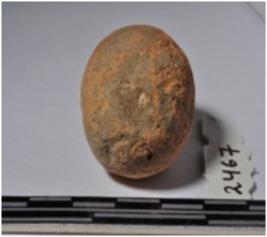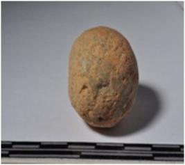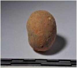 | Description / विवरण | A terracotta round shaped sling ball of smooth surface. |