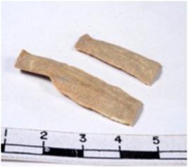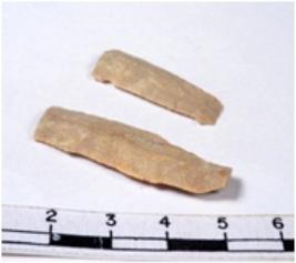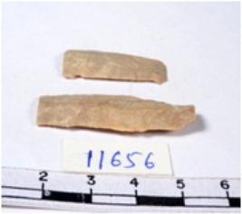 | Description / विवरण | A fragment of a rectangular shaped chert blade showing dorsal sides with sharp cutting edges having smooth surface and triangular section. |