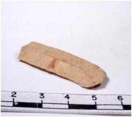 | Description / विवरण | A fragment of a rectangular shaped chert blade showing dorsal sides with sharp edges having smooth surface and triangular section. |