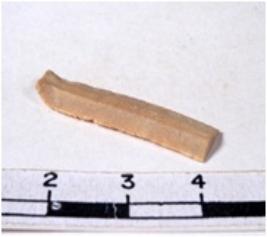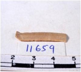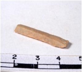 | Description / विवरण | A fragment of a rectangular shaped chert blade showing dorsal sides with sharp cutting edges having smooth surface and triangular section. |
