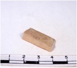| Description / विवरण | A fragment of a rectangular shaped chert blade showing dorsal sides with sharp edges having smooth surface and triangular section. |