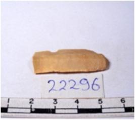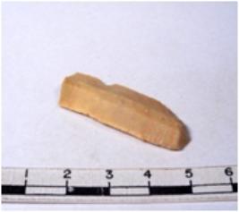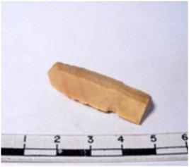 | Description / विवरण | A fragment of a rectangular shaped chert blade showing dorsal sides with sharp edges having smooth surface and triangular section. |