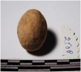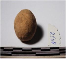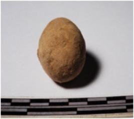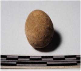 | Description / विवरण | A terracotta sling ball round in shape of smooth surface. |