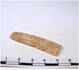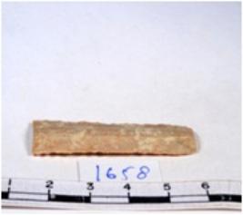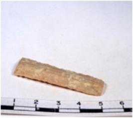| Description / विवरण | A fragment of a rectangular shaped chert blade showing dorsal sides with sharp edges having smooth surface and triangular section. |