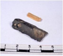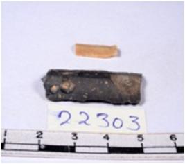 | Description / विवरण | A fragment of a rectangular shaped chert blade showing parallel sides with sharp edges having smooth surface and triangular section. |