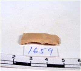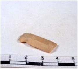 | Description / विवरण | A fragment of a rectangular shaped chert blade showing dorsal sides with sharp cutting edges having smooth surface and triangular section. |