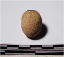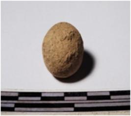 | Description / विवरण | A terracotta sling ball round in shape of smooth surface. |