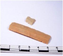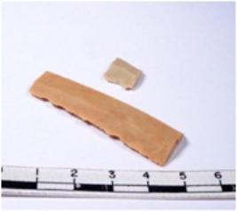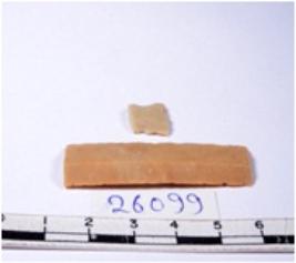 | Description / विवरण | A fragment of a rectangular shaped chert blade showing dorsal sides with sharp cutting edges having smooth surface and triangular section. |