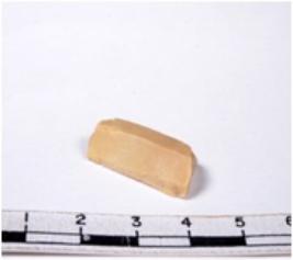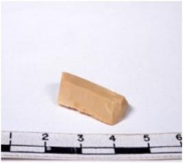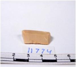 | Description / विवरण | A fragment of a rectangular shaped chert blade showing dorsal sides with sharp edges having smooth surface and triangular section. |