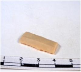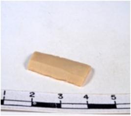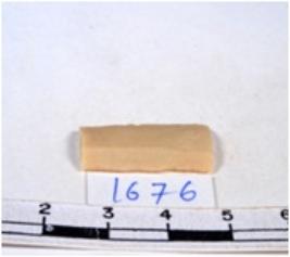| Description / विवरण | A fragment of a rectangular shaped chert blade showing dorsal sides with sharp cutting edges having smooth surface and triangular section. |