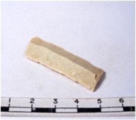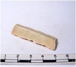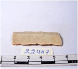 | Description / विवरण | A fragment of a rectangular shaped chert blade showing dorsal sides with sharp cutting edges having smooth surface and triangular section. |