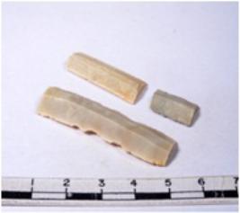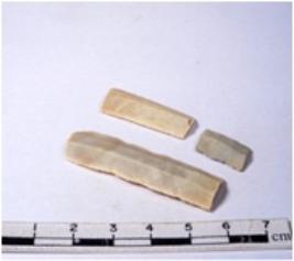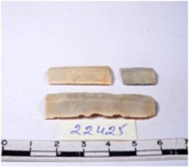 | Description / विवरण | A fragment of a rectangular shaped chert blade showing dorsal sides with sharp edges having smooth surface and triangular section. |