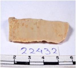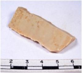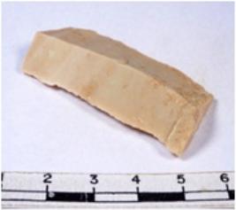| Description / विवरण | A fragment of a rectangular shaped chert blade showing dorsal sides with sharp cutting edges having smooth surface and triangular section. |