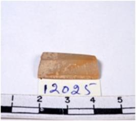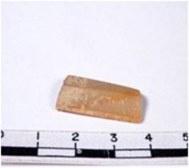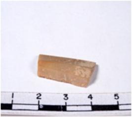 | Description / विवरण | A fragment of a rectangular shaped chert blade showing dorsal sides with sharp cutting edges having smooth surface and triangular section. |