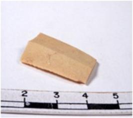 | Description / विवरण | A fragment of a rectangular shaped chert blade showing dorsal sides with sharp edges having smooth surface and triangular section. |