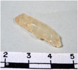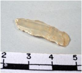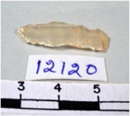 | Description / विवरण | A fragment of a rectangular shaped chert blade showing dorsal sides with sharp cutting edges having smooth surface and uneven section. |