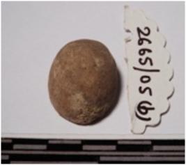 | Description / विवरण | A fragment of a terracotta round shaped sling ball of circular in section of smooth surface. |