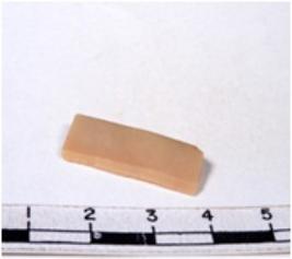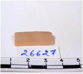 | Description / विवरण | A fragment of a rectangular shaped chert blade showing dorsal sides with sharp cutting edges having smooth surface and triangular section. |