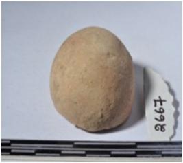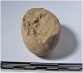 | Description / विवरण | A fragment of a terracotta ball round in shape of smooth surface. |