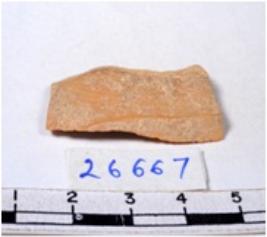 | Description / विवरण | A fragment of a rectangular shaped chert blade showing dorsal sides with sharp cutting edges having smooth surface and triangular section. |