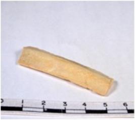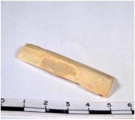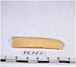 | Description / विवरण | A fragment of a rectangular shaped chert blade showing dorsal sides with sharp edges having smooth surface and uneven section. |