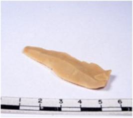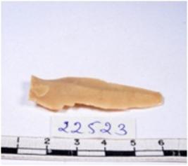 | Description / विवरण | A fragment of a rectangular shaped chert blade showing dorsal sides with sharp edges having smooth surface and triangular section. |
