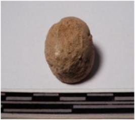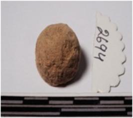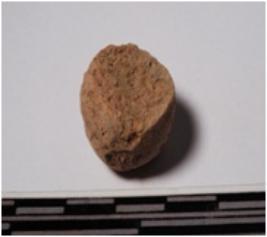 | Description / विवरण | A fragment of a terracotta sling ball globular in shape of smooth surface. |