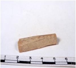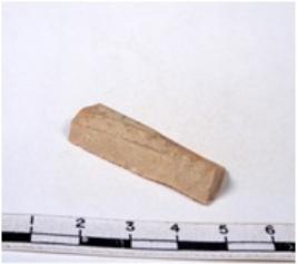 | Description / विवरण | A fragment of a rectangular shaped chert blade showing dorsal sides with sharp edges having smooth surface and triangular section. |