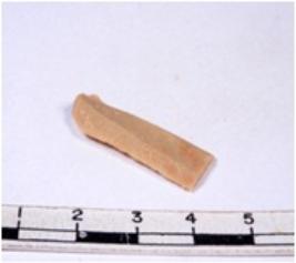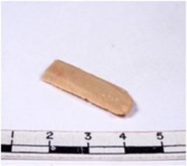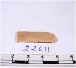 | Description / विवरण | A fragment of a rectangular shaped chert blade showing dorsal sides with sharp cutting edges having smooth surface and triangular section. |