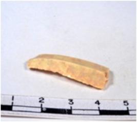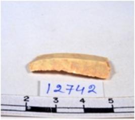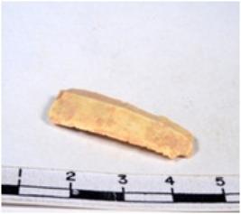 | Description / विवरण | A fragment of a rectangular shaped chert blade showing dorsal sides with sharp cutting edges having smooth surface and triangular section. |