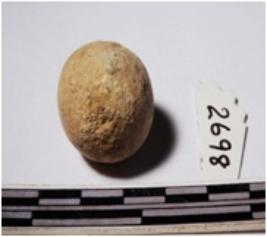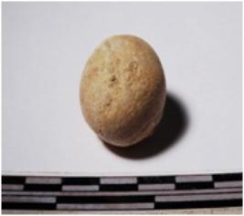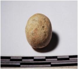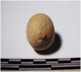 | Description / विवरण | A terracotta round shaped sling ball of smooth surface. |