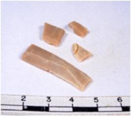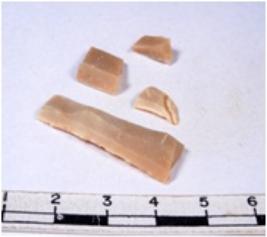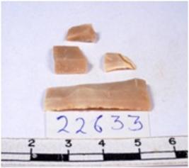 | Description / विवरण | A fragment of a rectangular shaped chert blade showing dorsal sides with sharp cutting edges having smooth surface and triangular section. |