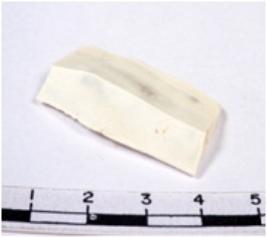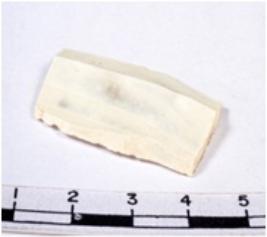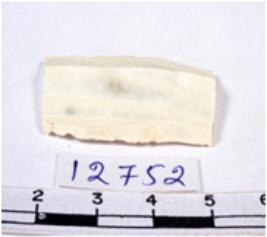 | Description / विवरण | A fragment of a rectangular shaped chert blade showing dorsal sides with sharp cutting edges having smooth surface and triangular section. |