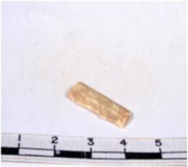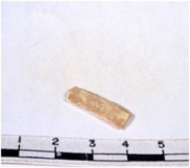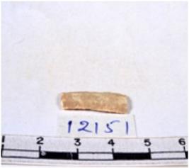 | Description / विवरण | A fragment of a rectangular shaped chert blade showing parallel sides with sharp edges having smooth surface and uneven section. |